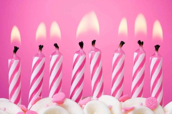 Roze-wit gestreepte kaarsjes. Er zitten maar liefst 24 kaarsjes en 12 houders in de verpakking. Te gebruiken voor op een verjaardagstaart of een andere speciale gelegenheid. Ook leuk voor de geboorte van een meisje!