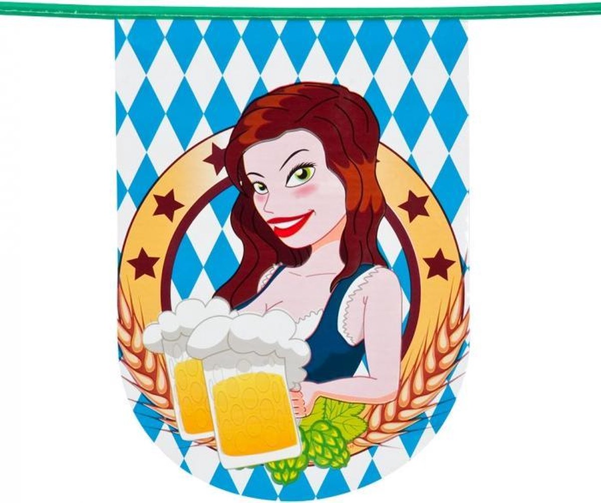 Oktoberfest? Of geef je een bierfeestje, dan maakt deze vlaggenlijn het feest compleet! Alle vlaggetjes zijn met elkaar verbonden, zodat je ze eenvoudig als een geheel kan ophangen. 8 Meter